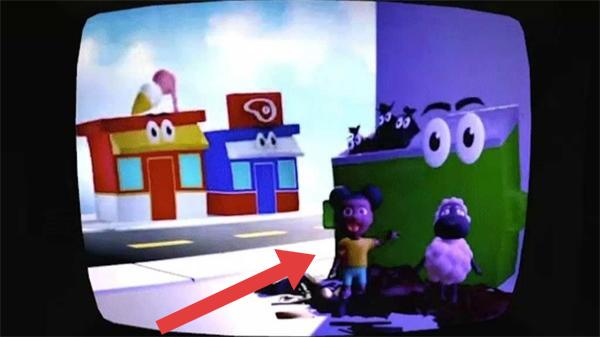 3、呈现了卡通风格的场景与角色,结合结果可知属于该恐怖系列里的情节,具有独特的诡异、复古又带鬼畜搞笑的风格。