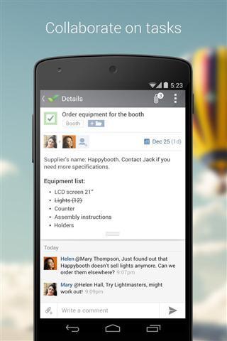 4、讨论任务与您的团队在旅途中保持最新与推送通知,请根据您的待办事项清单,同时让您的早晨卡布奇诺快速查找你需要的任何项目信息(任务,文件,个人)