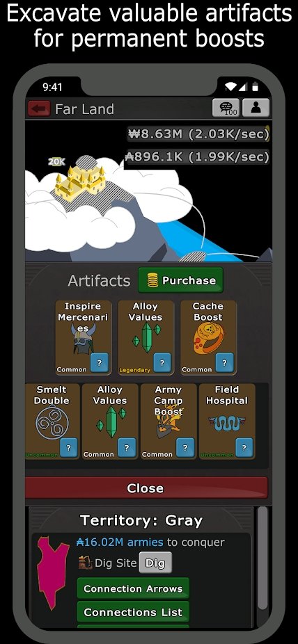 2、离线收益持续累积:独特的离线挂机收益机制,即使退出游戏,军队仍会在后台自动执行征服任务,累积资源、经验与领土,真正实现“睡觉时征服世界”的轻松体验。