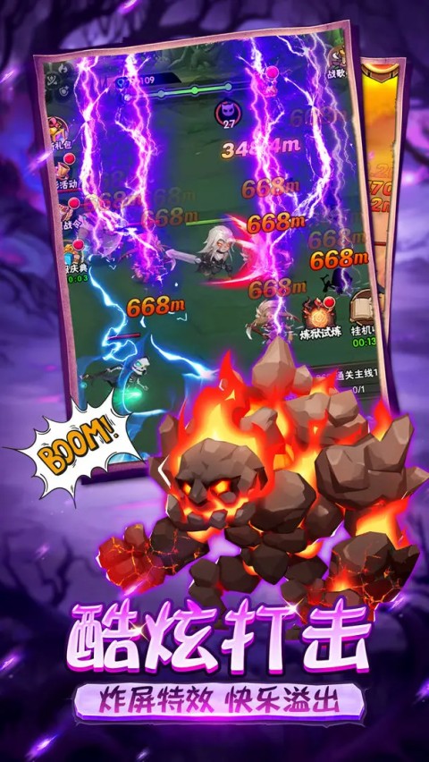 1、技能特效全屏炸裂:释放卡牌技能时,伴随绚丽光影、震撼音效,从魔法风暴到物理重击,视觉与听觉双重冲击,强化战斗沉浸感。