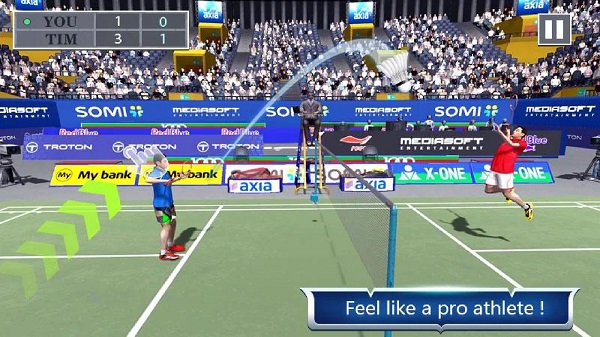 2、职业养成系统:从无名新秀到传奇球星,通过商店购买碳纤维球拍(提升击球力量)、智能运动手环(监测体能消耗),雇佣教练定制训练计划。