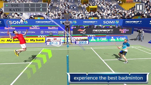1、羽毛球游戏模式选择界面GAMEMODE,有评分,更多游戏,世界巡回赛,快速游戏按钮。