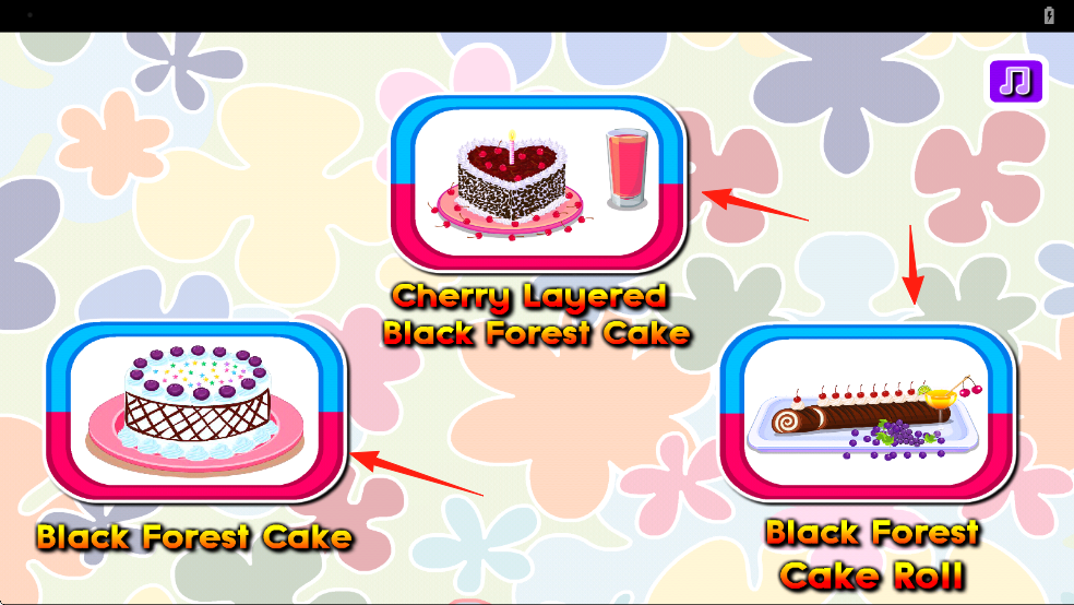 1、选择要制作的【BlackForestCake、CherryLayeredBlackForestCake、BlackForestCakeRoll】,进入对应蛋糕制作流程。