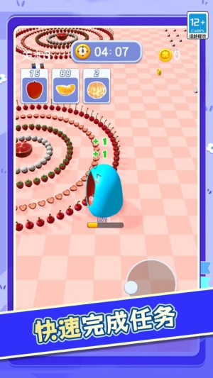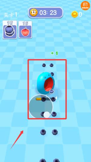 1、进入关卡后立即控制角色开始吃掉各类物品,优先收集密集区域的食物,快速积累能量提升等级与体型。