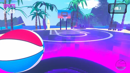 1、沉浸式投篮:高度拟真的第一人称视角与物理引擎,支持多维度投篮技巧与策略组合,不同位置与角度产生独特进球体验,每次投篮都是技术与心理的双重考验。