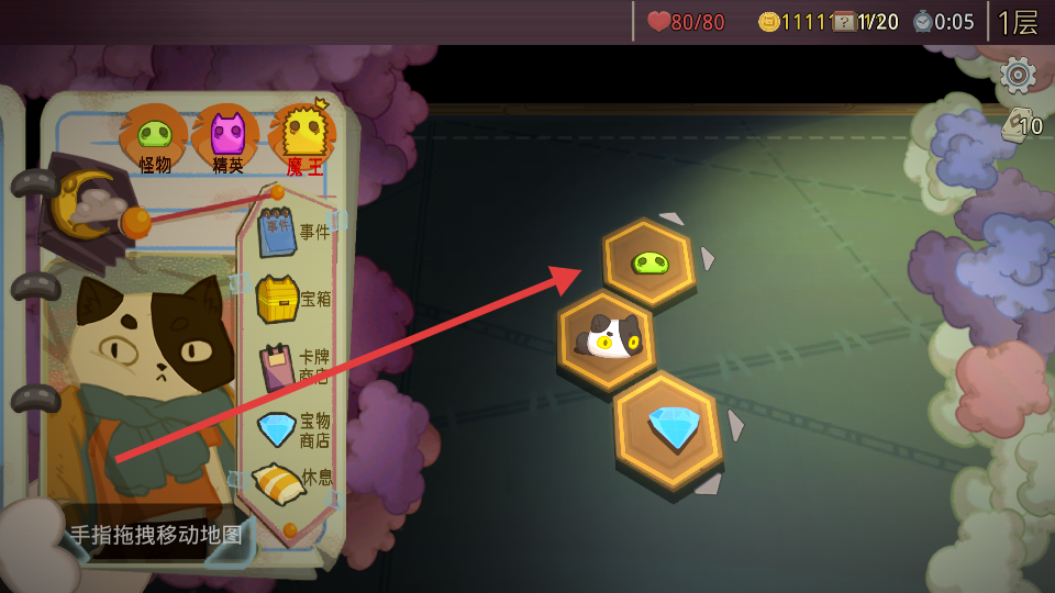1、卡组构筑:开局只有三张烂牌起家,但是通过击败敌人收集新卡,可以像拼乐高一样组建专属牌库。