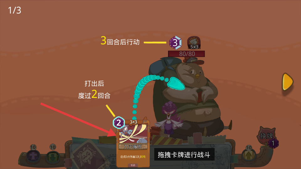 2、盯着敌人弱点回合数掐表,在数字归零时甩牌能打出双倍快乐。