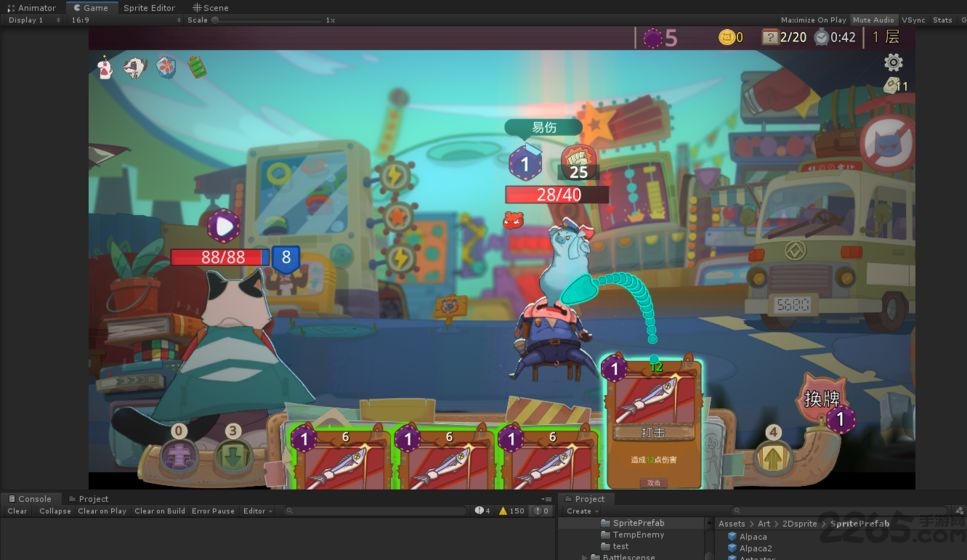 1、每回合根据行动点打牌,老虎出爪兔子飞踢,谁先耗光血量谁认输。