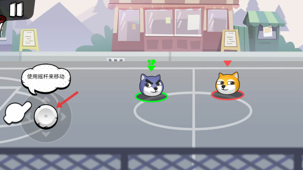 1、移动控制:用左侧摇杆,操控蓝色角色(1P)在球场移动。
