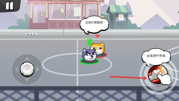 2、发起攻击:点击右侧攻击键,对橙色敌人(红圈)出拳。
