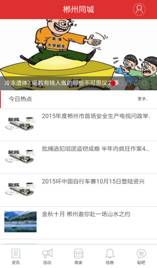 郴州同城聚集了所有郴州资讯、同城活动、全城商家、商家优惠、分类信息、本地贴吧等一站式信息平台,专注为郴州人民服务!打造本地最高端的地方门户平台,给大家提供一个便捷的掌上生活,一起开启全新互联网时代。