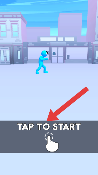 1、画面中显示【TAPTOSTART】(点击开始),蓝色火柴人角色、城市街道场景是其视觉元素,属于休闲动作类型。