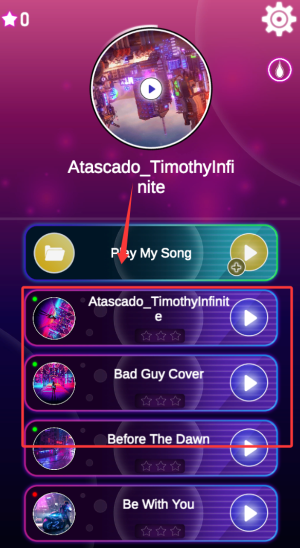 2、支持导入设备存储中的音频文件,经智能分析后自动生成可玩节奏关卡。