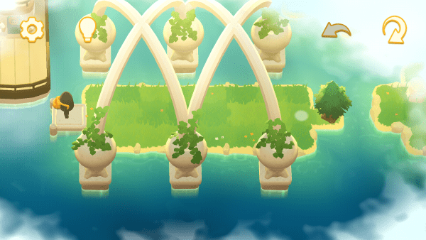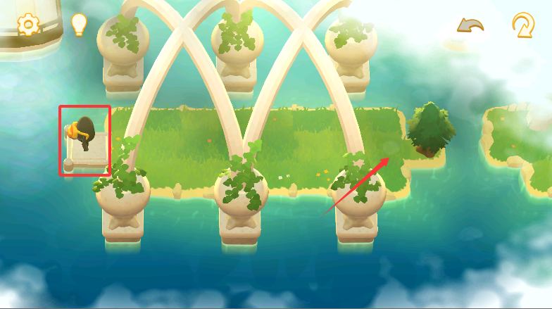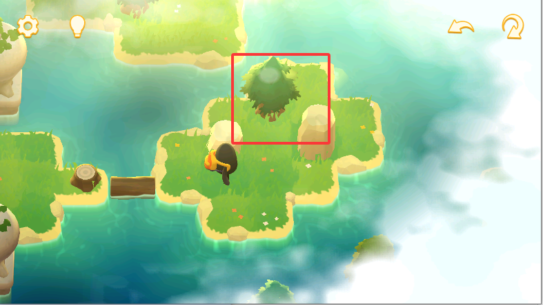 3、到达区域后,点击图示大树,为两座岛构建桥梁。