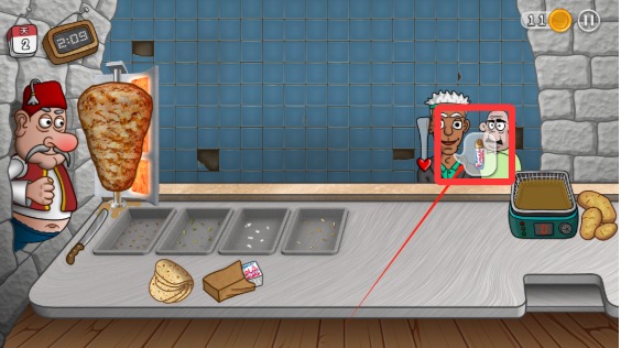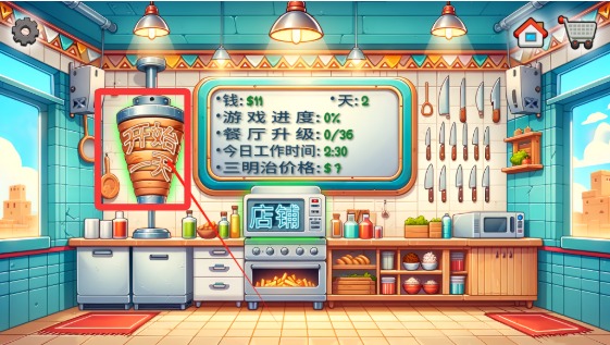 3、顾客收到沙威玛后,就会给我们支付金币,赚到的钱可以购买新的设备。