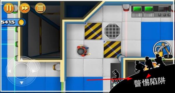 2、注意观察地面红色警戒区域与警卫巡逻路线,趁其转身时快速通过,拾取场景中的金币可解锁加速跑等技能。
