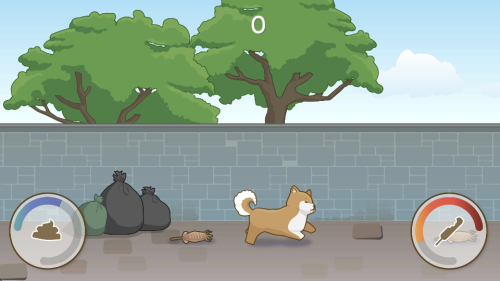 1、设置前进和便便的虚拟按钮,让玩家可以轻松掌握横版游戏界面,体验双手操作带来的不同寻常的遛狗乐趣。