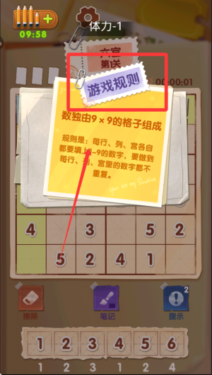 1、玩家需要在九宫格中精准填入数字,严格确保每行每列以及每个宫格内的数字都不重复,通过严谨的逻辑推理完成谜题挑战。