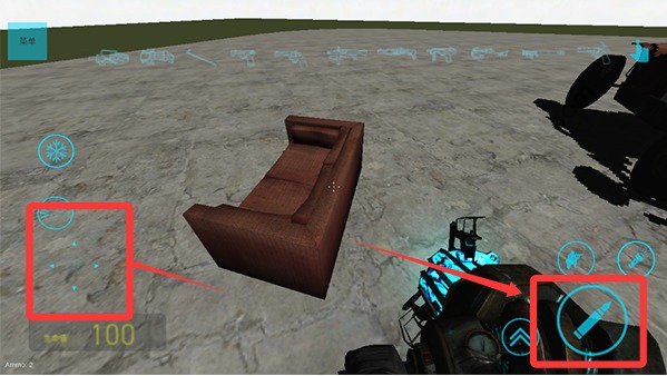 3、进入游戏后滑动左下角摇杆即可移动角色,右侧则是射击。