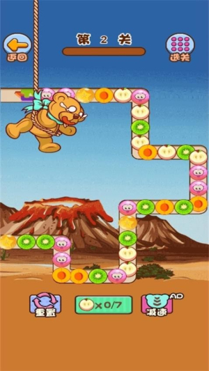 1、进入关卡后先观察玩具熊的位置和水果分布,优先消除支撑玩具熊下方的水果,避免操作失误导致它掉落。