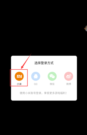 1、点击小米图标,使用小米账号登录游戏。