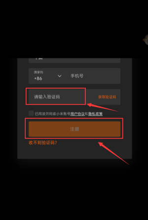 3、填写验证码后,点击橙色注册按钮完成。