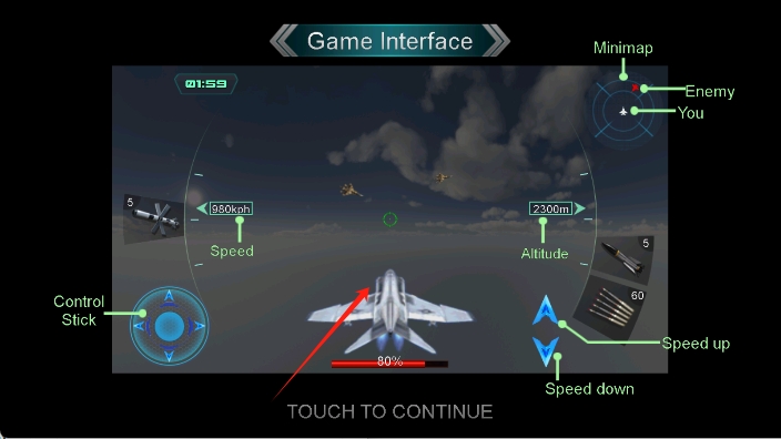 1、驾驶基础教练机熟悉飞行操作,在简单训练任务中掌握起飞、降落、转向等基础技巧,完成首次模拟空战。