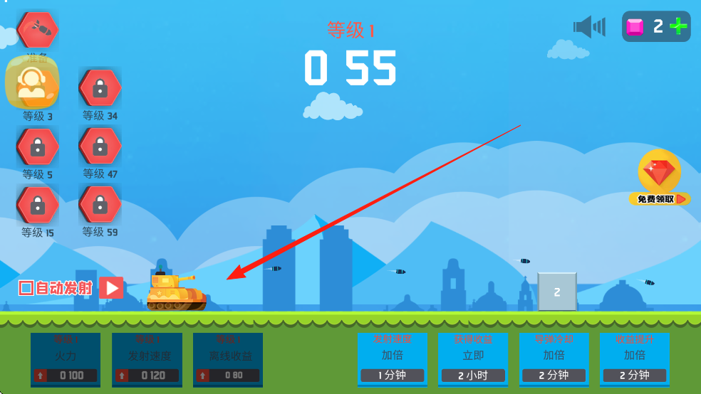 1、基础操作体系:点击屏幕调整射击角度,滑动屏幕控制射击力度,双指操作切换坦克,通过组合操作完成复杂射击任务操作简单直观,让玩家专注策略规划。