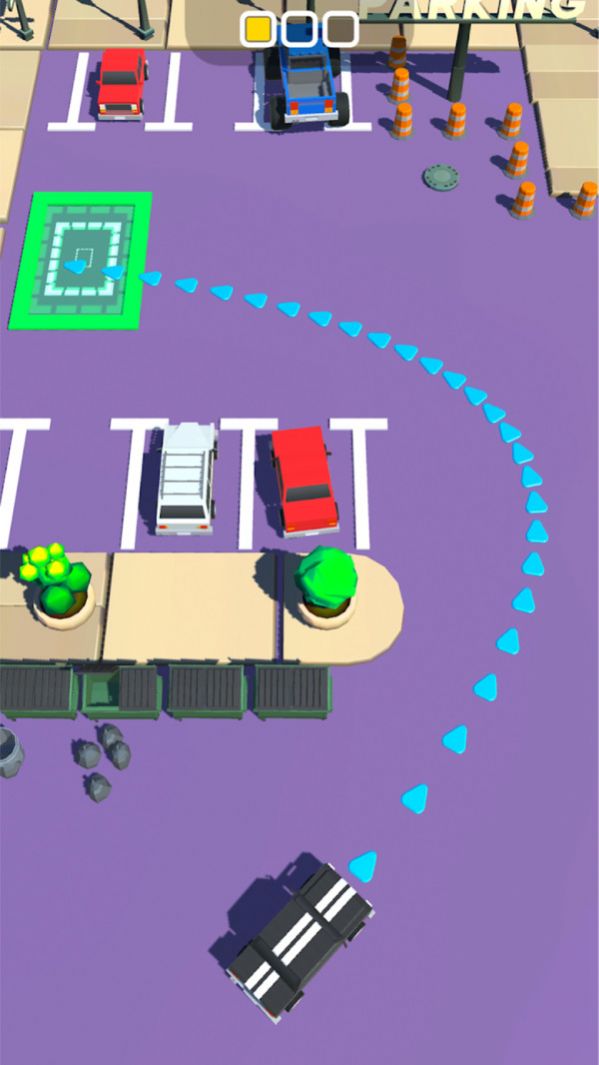 2、精准停车任务考验:每次挑战需将赛车停放在指定区域,看似简单却极具难度,需精准控制车辆角度与速度,完成高难度停车任务。