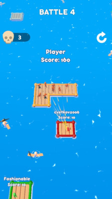木筏大作战深度融合生存冒险与策略对战,打造别具一格的沉浸式体验,参与者化身海上霸主,在充满危机的游戏世界中步步为营,通过巧妙收集资源与强化木筏,逐步解锁更多武器与战术,随着探索深入解锁更多隐藏成就与趣味挑战,将传统生存与现代对战元素巧妙结合,既能体验扣人心弦的海上冒险,又能感受成功统治的成就感。