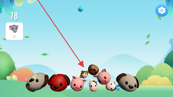 3、持续操控动物头像,收集道具或完成任务,增加分数,如分数提升至“78”,注意避开其他动物头像,顺利通过关卡。