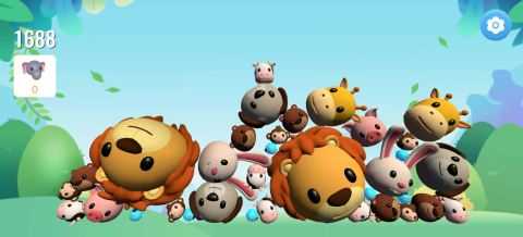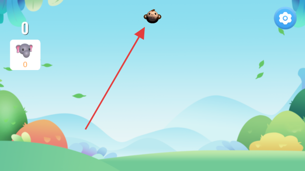 2、游戏中,操控动物头像移动,如屏幕中的猴子头像,躲避障碍或收集物品,左上角的“0”为初始分数或计数。