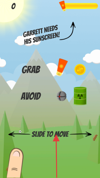 2、游戏中,根据【GARRETT NEEDS HIS SUNSCREEN!】提示,按【SLIDE TO MOVE】操作,滑动屏幕收集防晒霜,避开危险物品。