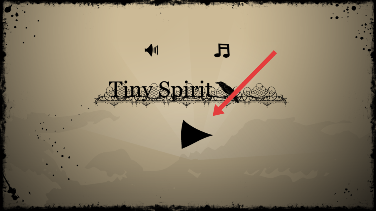 1、进入游戏主界面,点击中间黑色播放按钮,开启Tiny Spirit的冒险,可按需调节音量、音乐设置。