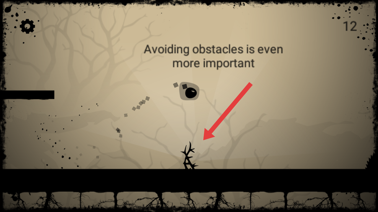 3、挑战关卡12,遵循“Avoiding obstacles is even more important”提示,操控小球躲避荆棘等障碍,推进游戏。