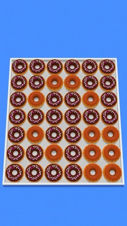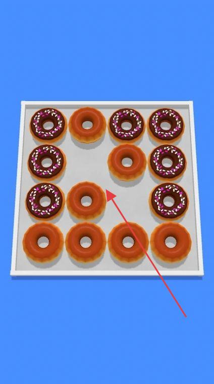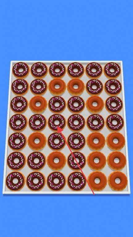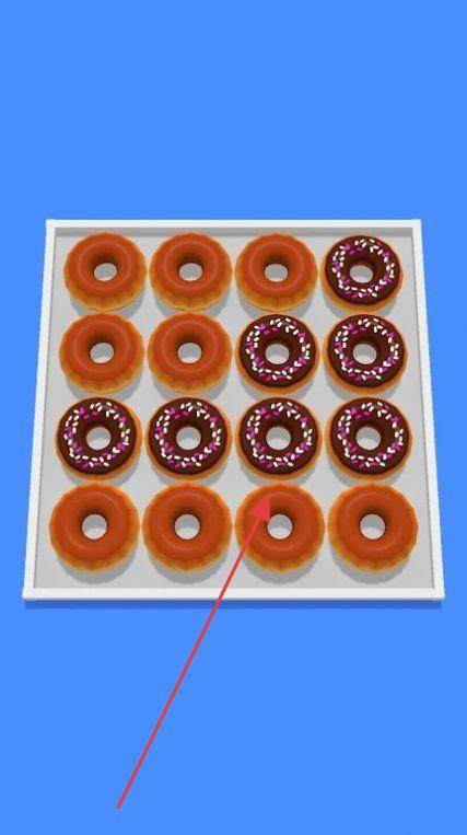 1、进入游戏后,观察关卡中不同款式的甜甜圈分布,点击单个甜甜圈进行翻转,首次尝试将部分甜甜圈变为相同款式。