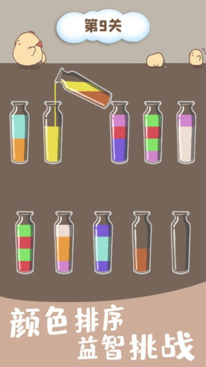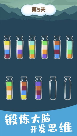 1、游戏突破传统益智游戏框架,创新采用色彩分类机制,玩家需要精准操控液体流动完成颜色分离任务,有效锻炼逻辑思维能力和手眼协调能力。
