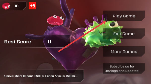 1、在主菜单,点击【Play-Game】,进入游戏,准备操控武器,拯救红细胞,抵御病毒。