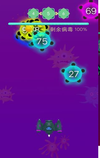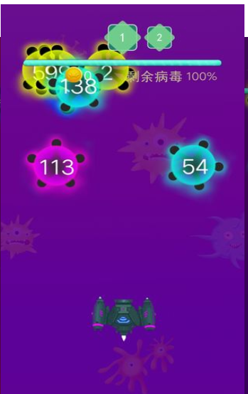 1、病毒消灭射击:作为飞行射击作品,玩家通过操作消灭场景中的各类病毒,感受射击的爽快感,同时践行“抗击病毒”的核心目标。