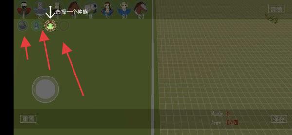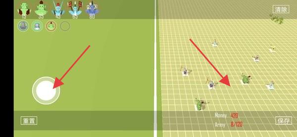 2、在战场编辑,消耗Money,布置所选兵种到网格,调整阵型,规划“Army”兵力,保存阵容。
