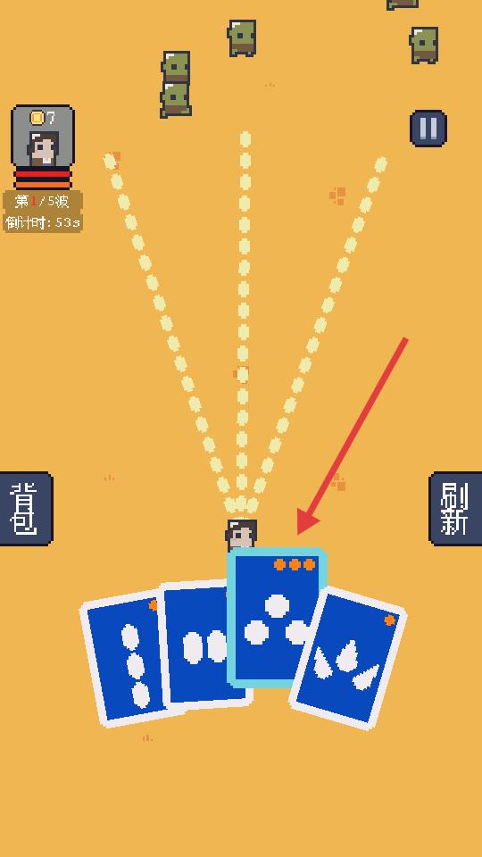 2、击败怪物掉落金币,用来解锁更强力的特效卡牌。