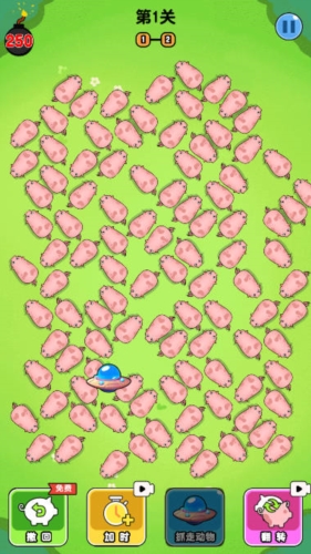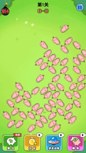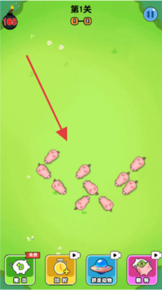 1、进入关卡:第1关,面对粉色小猪群,准备操作。