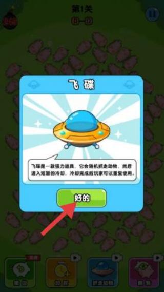2、使用道具:点击“群虫统帅(飞碟)”,确认“好的”,触发飞碟抓取动物。