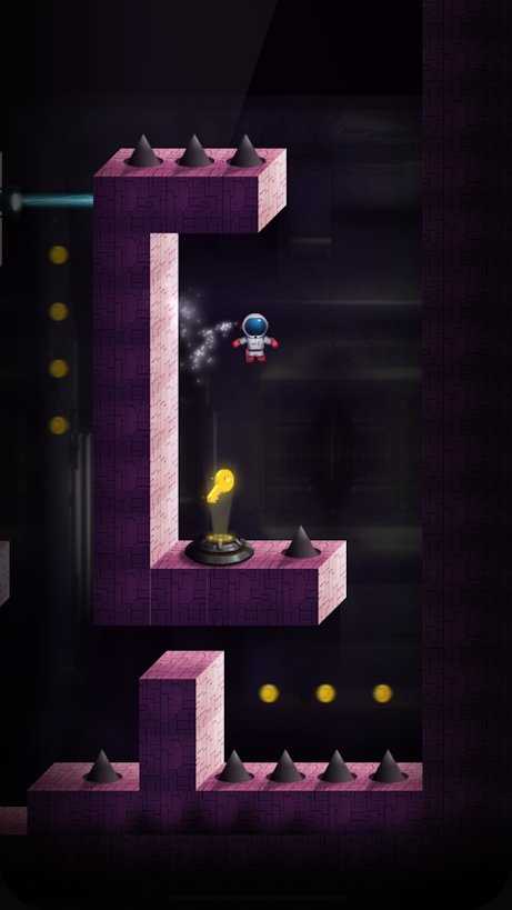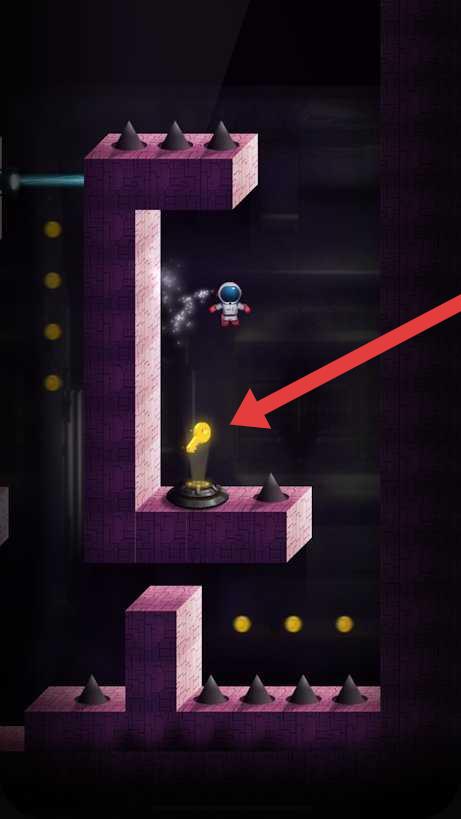 2、遇到金色钥匙,调整跳跃时机,避开尖刺,获取钥匙,为解锁新区域或机关做准备。