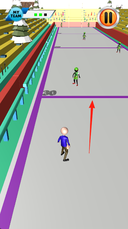2、玩法机制在赛道上,躲避绿队防守队员,带球前进,通过点击滑动,调整角色方向,争取达阵得分,推进比赛进程。