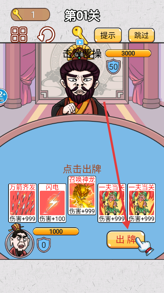 2、轻松上手:卡牌规则简单到阿斗都能学会,三分钟就能指挥赵云和吕布用表情包打架,但想通关还得动点歪脑筋。