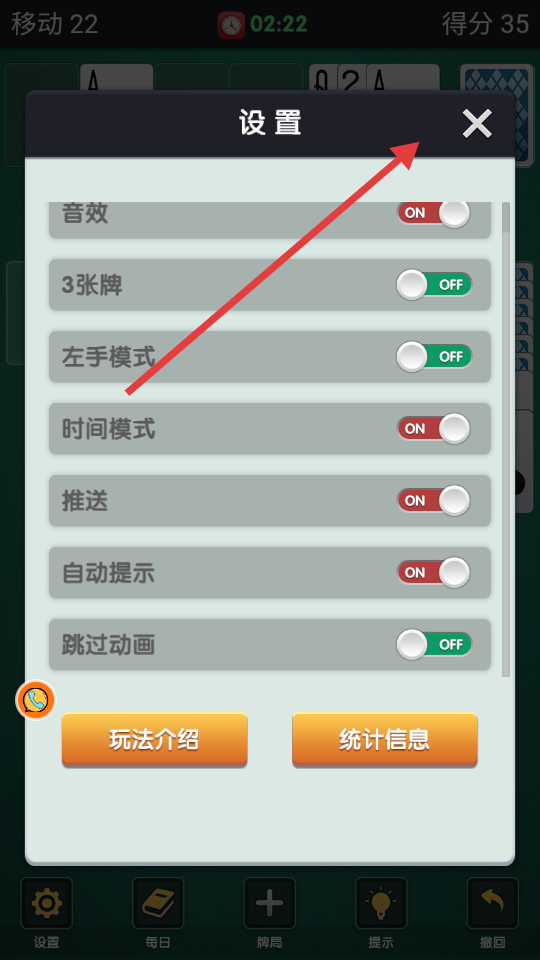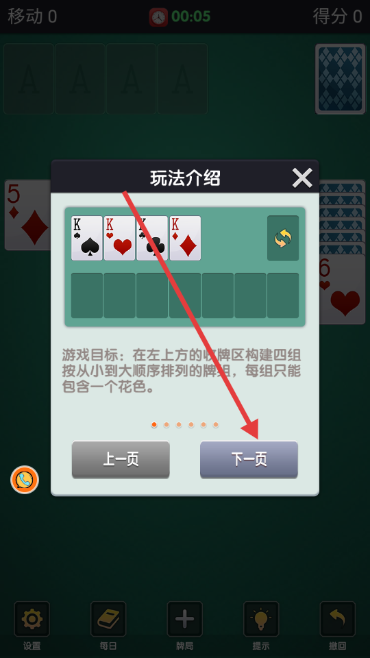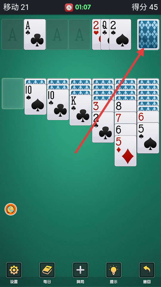 3、遇到死局点左下角发牌键,但每发一次都会让难度升级。