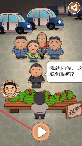 3、谐音梗剧情互动:融入“这瓜保熟吗”“西瓜太郎”等热门梗,如混混说“这瓜不熟我可不买”时,需点击西瓜弹出“熟了个透”的表情包。