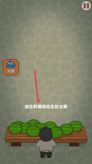 2、操作发射:按住屏幕拖动,发射西瓜(或水果),调整角/力度。
