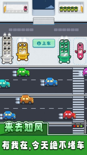 1、创新的颜色匹配玩法,通过观察人群服饰色彩调度对应车辆。动态生成的路况系统,每次游戏都会呈现不同的交通状况,考验即时决策能力。